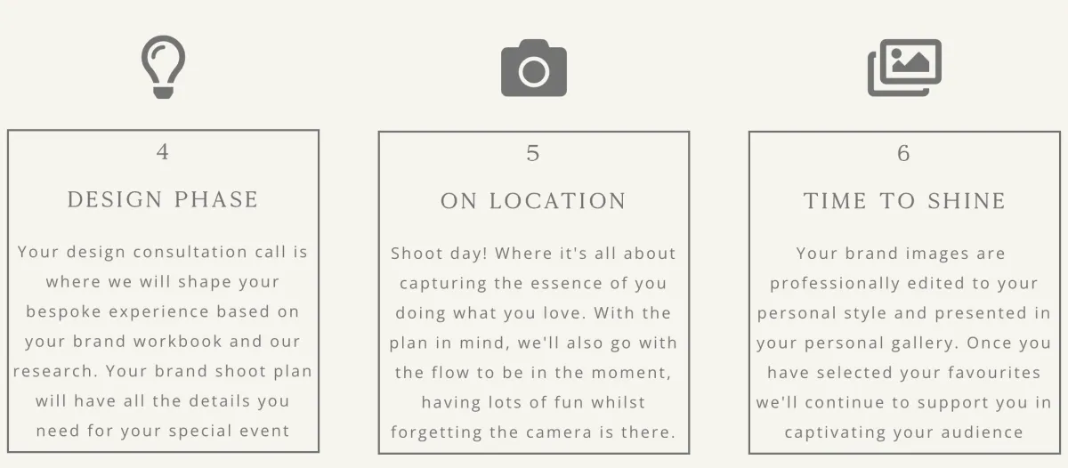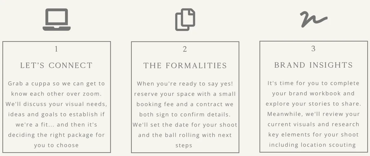 Your brand shoot is so much more than getting shot! We pride ourselves in delivering a premium service that will make the whole experience feel special, not just the photos. With our signature Triple C Method, we ensure we create brand images that attract your ideal clients and convert.